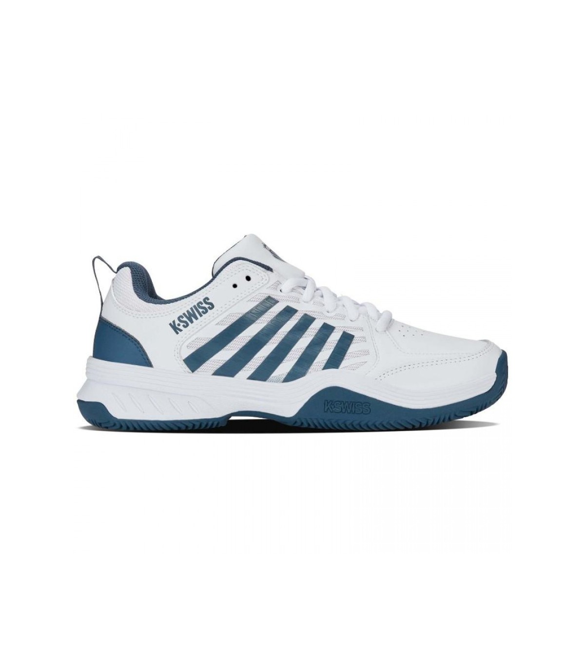 Das Kswiss Court Express 2 Clay Sneakers zeichnet sich auf das ergonomische Design aus, das sich an den Fuß anpasst und in jedem Schritt ein Gefühl von Sicherheit und Komfort anbietet. Seine spezialisierte Sohle bietet eine hervorragende Traktion, sodass Sie sich mit Vertrauen auf die Strecke bewegen können. Darüber hinaus fügt die Kombination von weißen und blauen Farben eine moderne und sportliche Note zu Ihrer Ausrüstung hinzu.