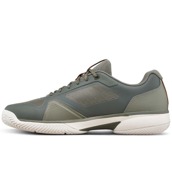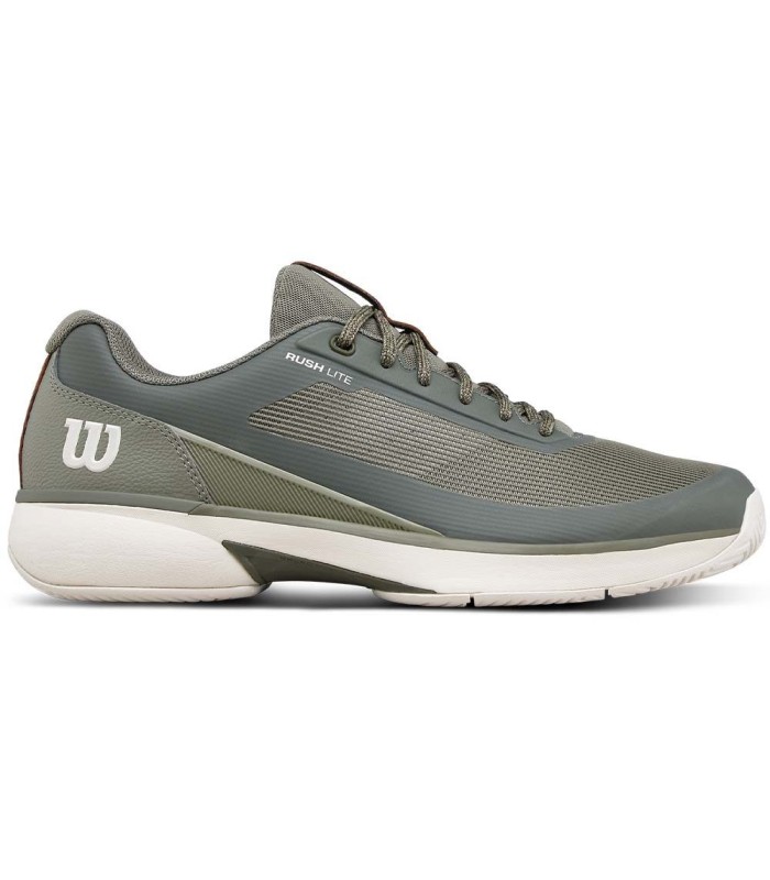 Entdecken Sie den Wilson Rush Lite 5 Schuhe in einem eleganten Khaki-Grün, der maximale Leistung auf der Strecke anbietet. Diese Hausschuhe eignen sich ideal für die Zwischenebene oder leichte Wettbewerber, die nach einer flexibleren und leichten Option suchen als Rush Pro 5.