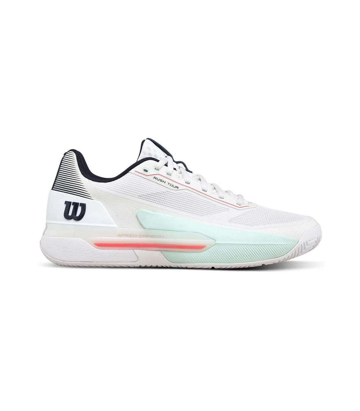 Entdecken Sie die Wilson Rush Tour 5-Schuhe in der eleganten Kombination aus weißen und grünen Pastellfarben, die eine außergewöhnliche Leistung auf der Strecke anbieten. Diese Turnschuhe sind die perfekte Wahl für anspruchsvolle Spieler, die ihr Spiel mit jeder Bewegung verbessern möchten.