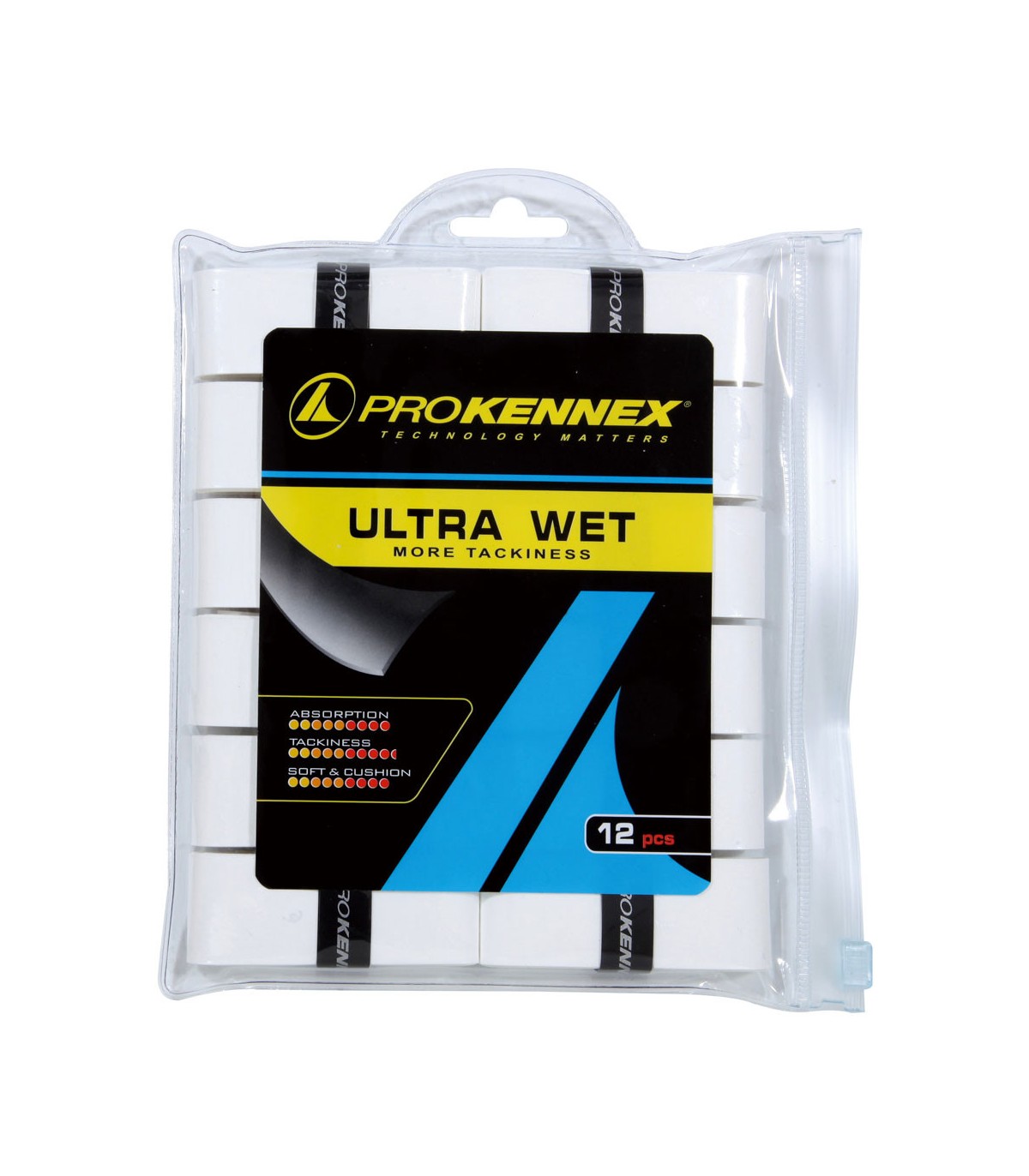 Entdecken Sie die Exzellenz der weißen Pro Kennex Ultra Wet Overgrips, eine ideale Lösung für Tennis- und Padelspieler, die ihre Leistung auf dem Platz verbessern möchten. Dieses Paket enthält 12 Overgrips, die für optimalen Halt entwickelt wurden und Ihre Kontrolle und Präzision bei jedem Schlag steigern. Mit ihrem eleganten weißen Design verbessern diese Overgrips nicht nur Ihre Technik, sondern verleihen Ihrer Ausrüstung auch einen ästhetischen Touch.
