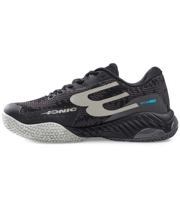 Die schwarzen ionischen 26-V-Bullpadel-Turnschuhe bieten dynamische Stabilität und überlegener Komfort auf dem Paddelgericht. Dieses Modell enthält das BPS-Heckstabilisierungssystem, ein zentrales Element in seinem Design, das eine optimale Fußstütze während seitlichen Bewegungen und intensiven Maßnahmen gewährleistet. Dieses System ist ideal für anspruchsvolle Spieler, die nach einem vielseitigen Schuhwerk suchen, das modernstil, verbesserte Stabilität und großer Komfort für ständige Übereinstimmungen kombiniert.