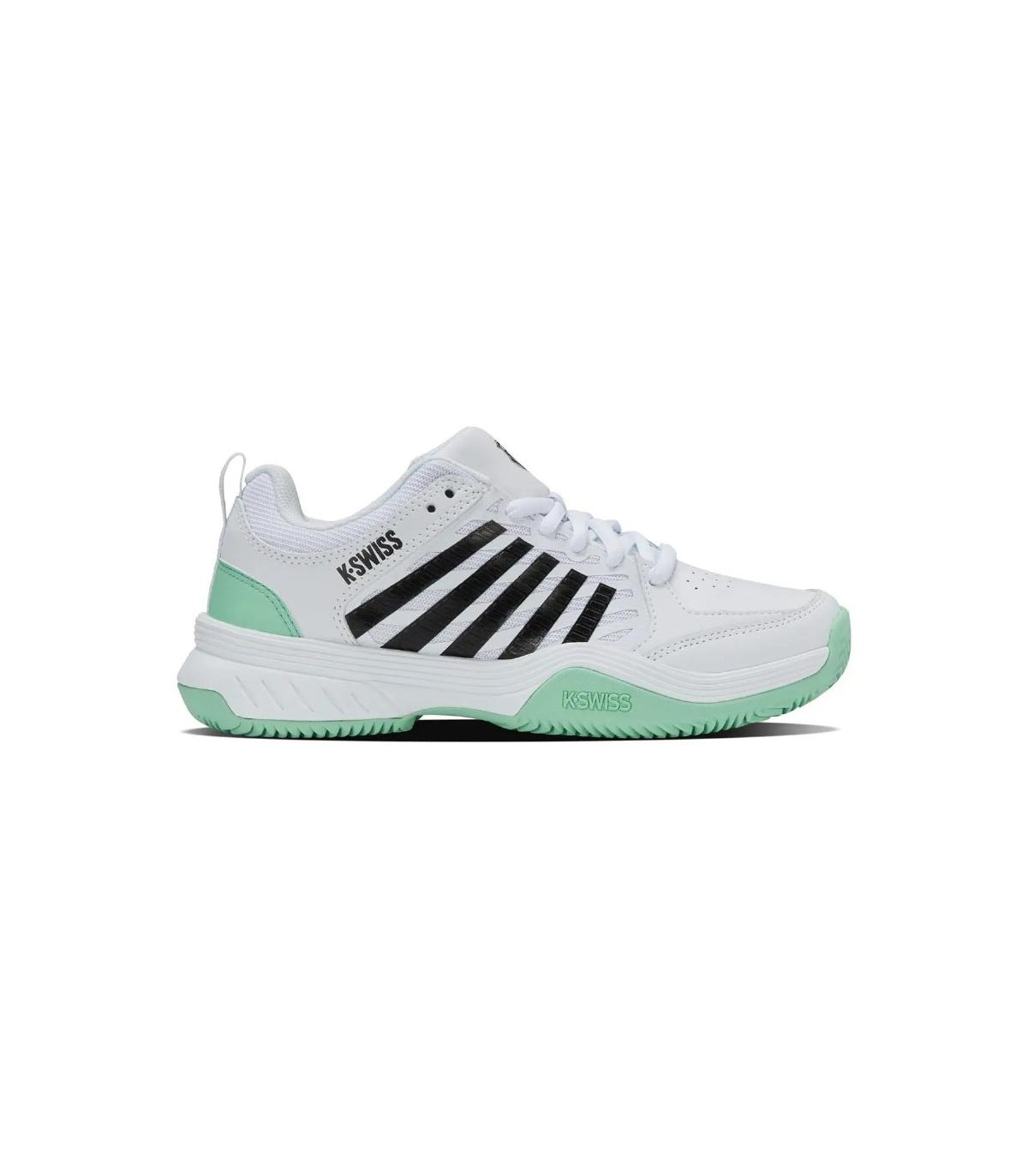 Erkunden Sie das Gericht mit Vertrauen und Stil mit dem Kwiss Court Express 2 Clay-Schuhe in weißen, Minz- und schwarzen Farben. Diese Turnschuhe entwickelt speziell für Paddelspieler, diese Turnschuhe bieten eine perfekte Kombination aus Komfort und Leistung.