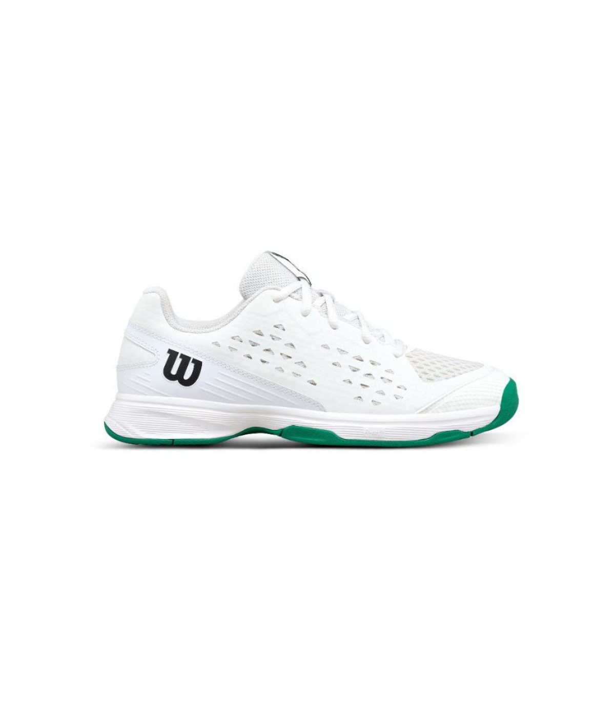 Der Wilson Rush Pro L White Green Junior bietet dank seines ergonomischen Designs ein verbessertes Spielerlebnis, das sich an den Fuß des Spielers anpasst. Seine Lichtstruktur und ihre widerstandsfähige Sohle stellen sicher, dass jeder Schritt fest und komfortabel ist und einem agilen und sicheren Spiel ermöglicht wird.
