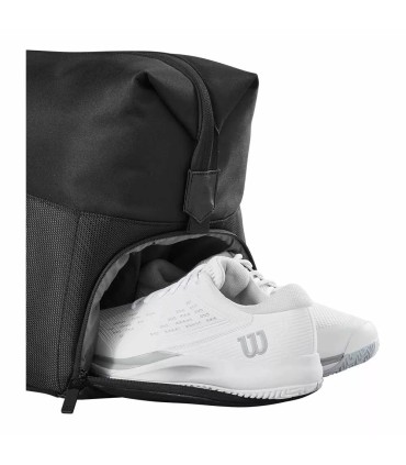 Darüber hinaus verfügt die Tasche über eine innere Tasche, die ideal ist, um unverzichtbare Accessoires wie Bälle, Kappen oder Griffe aufzubewahren. Organisation ist der Schlüssel, und diese Tasche wurde mit diesem Gedanken entworfen. Um schmutzige Kleidung und Schuhe vom Rest des Inhalts zu trennen, enthält sie eine belüftete Tasche, die die Frische im Inneren bewahrt und unerwünschte Gerüche vermeidet.