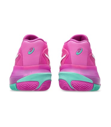 Entdecken Sie die Asics Gel Resolution X-Schuhe, die in einem lebhaften Rosa und Grünen Gebote bieten, die maximale Leistung am Tennisplatz anbieten. Dieses ikonische Modell passt sich perfekt an Spieler an, die Stabilität und Komfort in jeder Bewegung suchen.