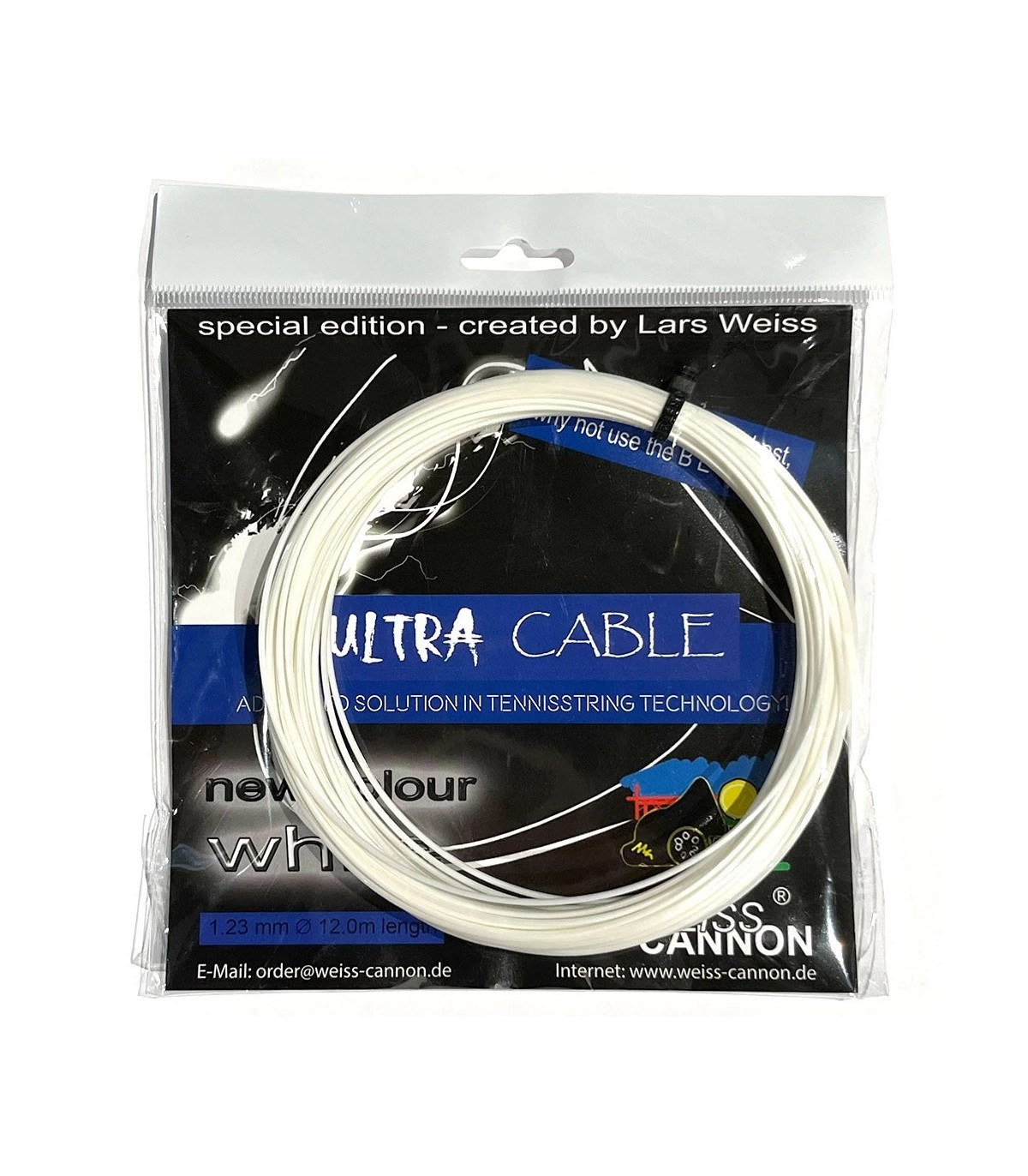 Die Weisscannon Ultra Cable Weiße Saite ist ein hochwertiges Monofilament, das entwickelt wurde, um das Spiel anspruchsvoller Tennisspieler zu revolutionieren. Mit einer Länge von 12 Metern präsentiert sich diese Saite als außergewöhnliche Option für Spieler, die ihre Leistung auf dem Platz verbessern möchten. Ihr exklusives Design, kreiert von Lars Weiss, besticht nicht nur durch seine weiße Ästhetik, sondern auch durch seine technischen Eigenschaften, die eine überlegene Kontrolle und eine signifikante Erhöhung des Spins bieten.