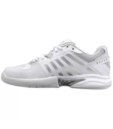 Entdecken Sie den K-Swiss Receiver V-Schuhen für Frauen in einem eleganten weißen und grauen Design, ideal für Tennisspieler, die Art und Leistung auf der Strecke kombinieren wollen. Diese Schuhe entwickelt sich, um überlegene Komfort und außergewöhnliche Stabilität zu bieten, die perfekte Wahl für Spieler, die ihr Spiel verbessern möchten, ohne Komfort zu kompromisslos zu fördern.