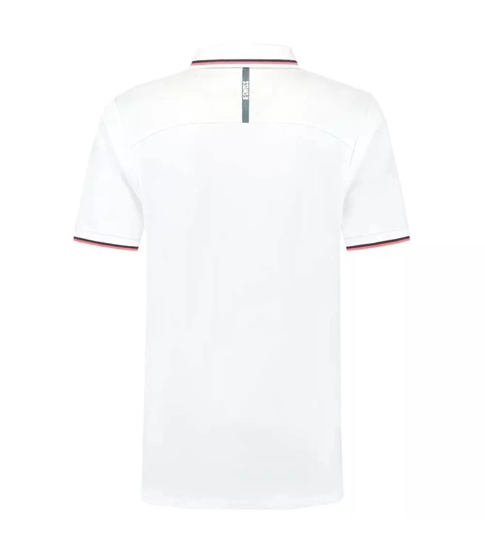 Das weiße K-Swiss Hypercourt Polo ist ideal für Tennisstudenten, die Leistung und Stil auf der Suche nach Leistung haben. Hergestellt aus 100% Polyester, bietet es Bewegungsfreiheit und ein effizientes Feuchtigkeitsmanagement. Sein elegantes Design mit Details in Rosa und Blau, zusammen mit dem ikonischen K-Swiss-Logo, machen sie auf der Strecke unerlässlich.