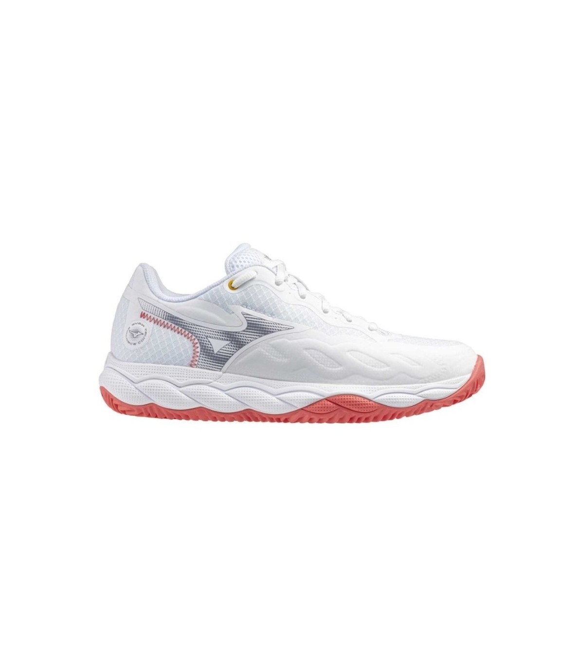 Mizuno Shoes Wave Enforce Court Clay White Blue Coral Frau eignen sich ideal für Paddelspieler, die nach einem spezialisierten Schuh suchen, mit dem sie ihr bestes Spiel auf der Strecke bereitstellen können. Perfekt für Amateur und erfahrene Spieler, die ein gutes Gleichgewicht zwischen Leistung und Stil schätzen.