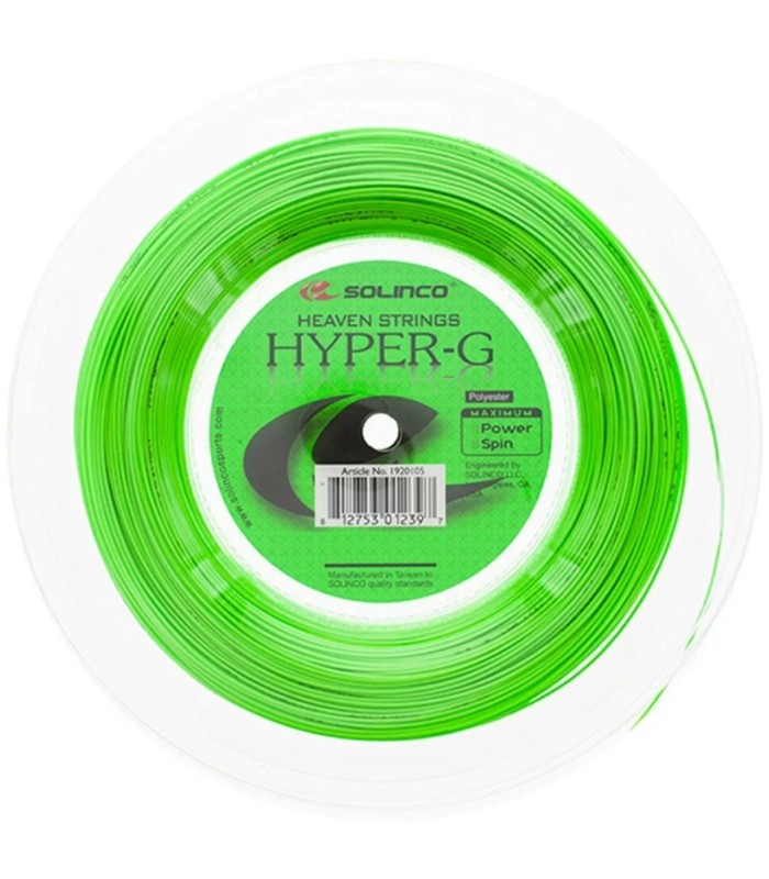 The 200m Solinco Hyper G reel is a high-performance tennis string that has earned a prominent place in the world of tennis for its ability to deliver exceptional control, unmatched spin effect, and impressive power. This monofilament string has been meticulously developed to provide players with a superior playing experience, combining advanced technology with a vibrant design that will not go unnoticed on the court.