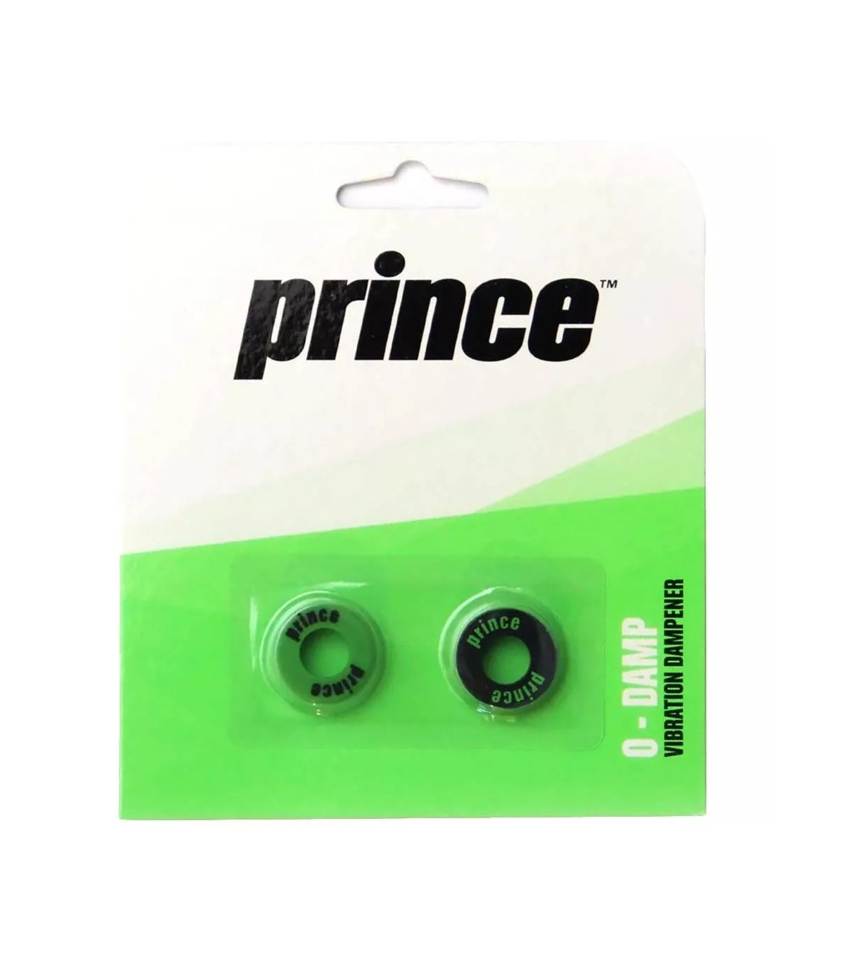 The Antivibrator Prince O-Damp In green and black colors it is the perfect accessory for tennis players looking for a more comfortable and controlled game. This device, sold in pairs, is characterized by its Classic round shape, which facilitates its placement in the main ropes of the racket, right at the base, where it is more effective.