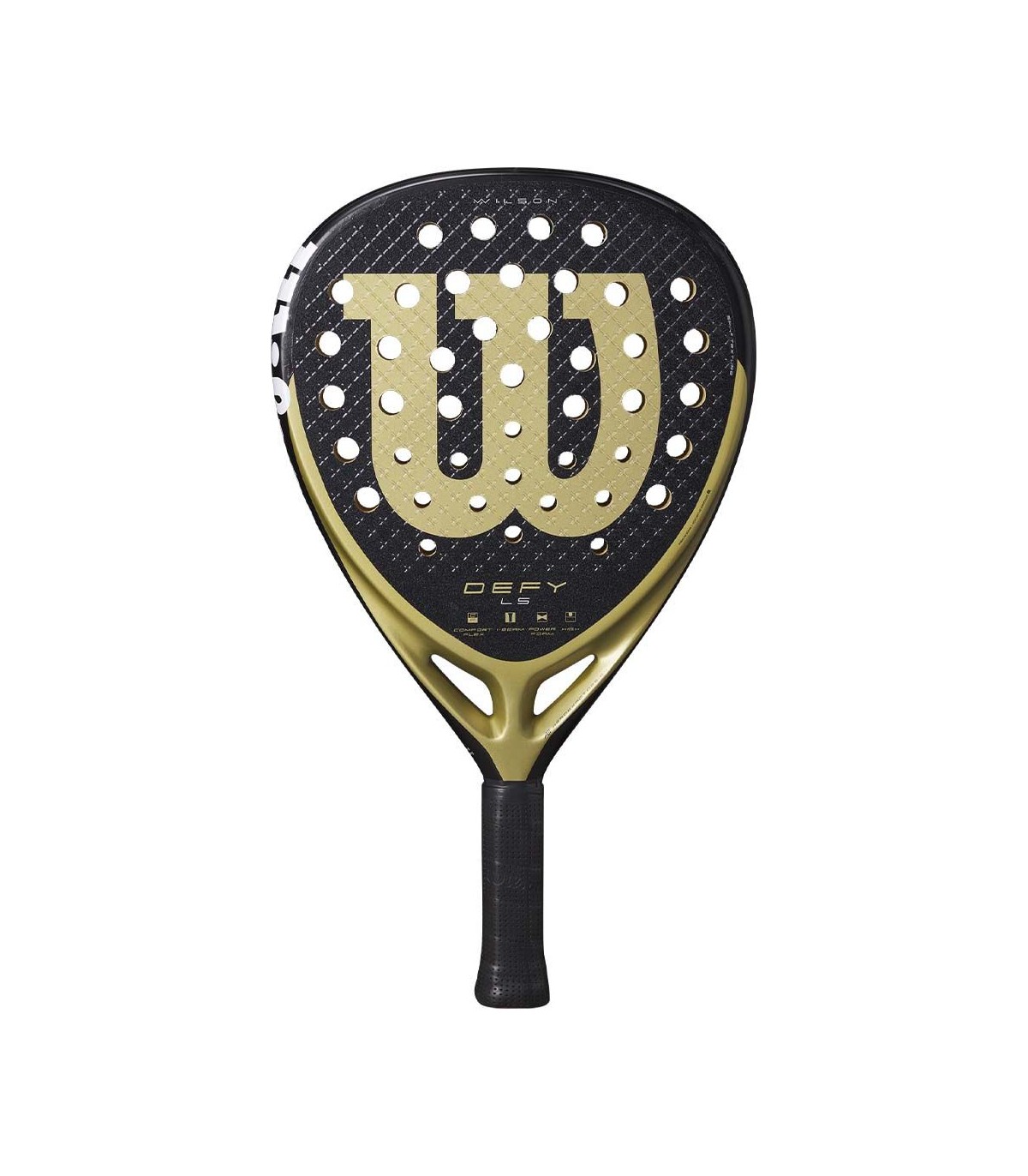 Among the technical specifications of the Wilson Defy LS V1, we find its weight of 355 grams unstrung and a high balance that favors power. Its structure has a thickness of 38 mm and a foam stiffness of 60 RA, contributing to a solid and stable feel with every hit. Although it does not include a cover, its design is intended to maximize performance in every match.