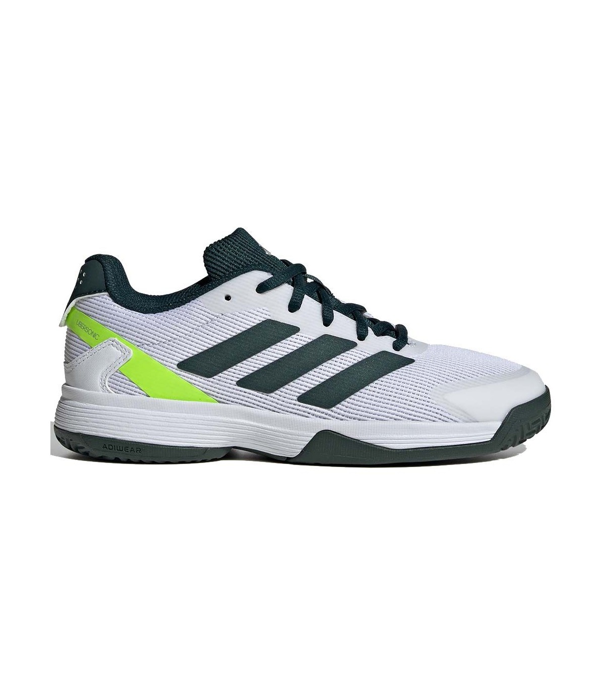 The Adidas Ubersonic Junior shoes in white and green colors are designed for young tennis players who seek to take their play to the next level with speed and agility. Inspired by the Style of the Adiquero Ubersonic 5 used by professionals, these slippers offer a design designed for fast movements and agile direction changes, allowing children to free all their skills on the track.