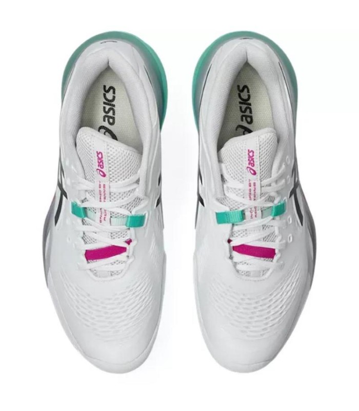 The ASICS GEL RESOLUTION X CLAY in white and green Aurora is the perfect choice for those players who seek superior performance on the paddle court. With a modern design and advanced technology, these slippers are designed to offer maximum comfort and stability during the game.