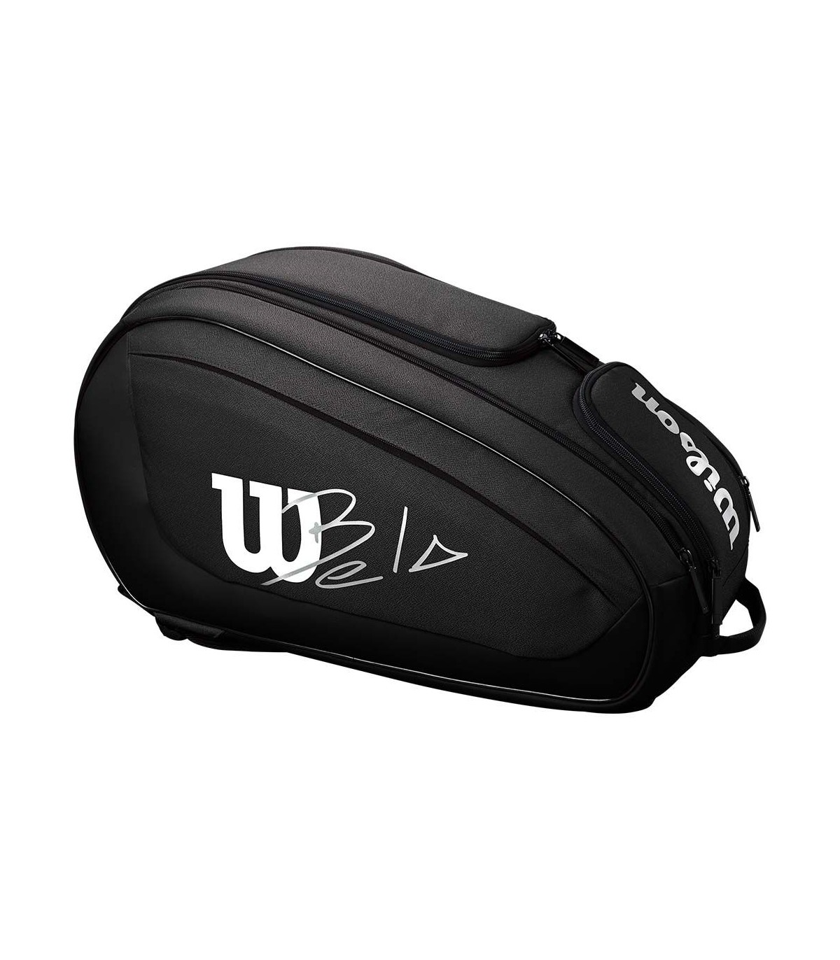 The Bag Wilson Bela DNA Super Tour Black It is much more than a simple sports bag; It is the result of the collaboration between Wilson and the legendary Pádel Player, Fernando Belastuín. Designed for those looking for excellence in each game, this bag combines functionality and style, standing out by its elegant design in black, adorned with the iconic Wilson X Bela logo, which evokes a timeless sporty elegance.