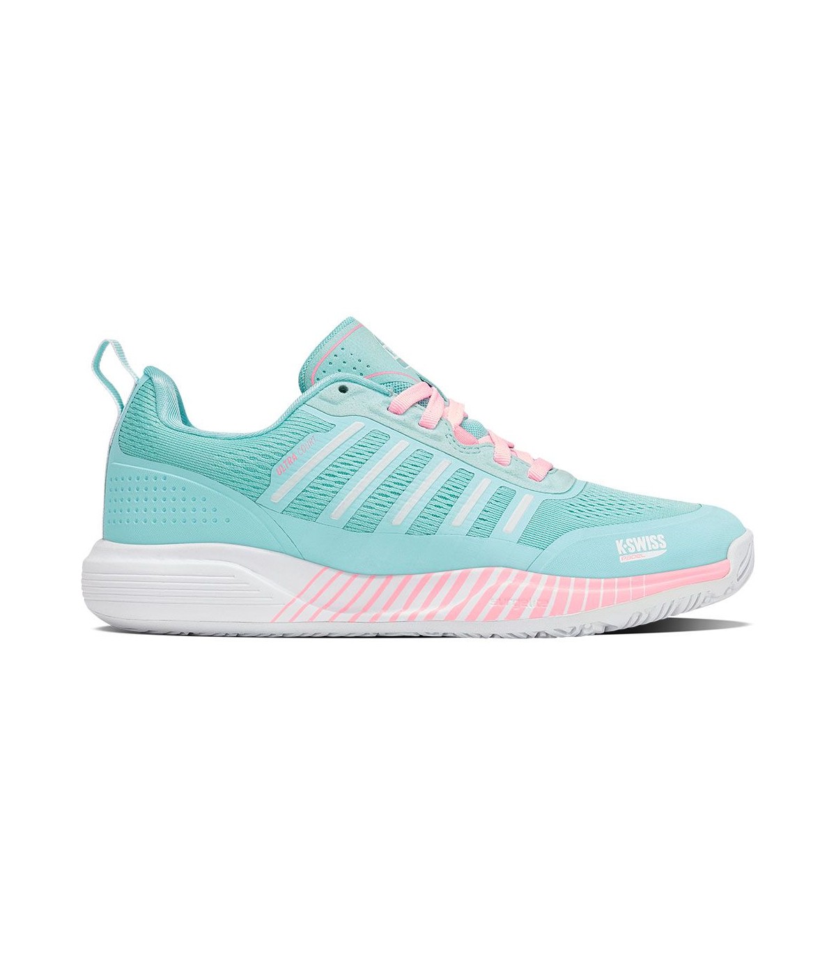 Choose the K-Swiss Ultra Court Padel Woman Turquesa and experience the perfect combination of lateral stability and close to the track, turning them into your best ally to win in agility and vivacity.