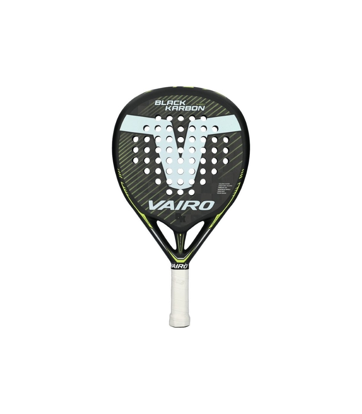 In summary, the Vairo Black Karbon Speed is the perfect choice for advanced players looking for a high-performance racket capable of responding effectively in all types of plays. Its careful design and the incorporation of top-quality materials and technologies allow players to take their game to the highest level, offering power, precision, and control in a single tool. If you want to stand out on the court and demand the best from your equipment, the Vairo Black Karbon Speed is the racket you need.