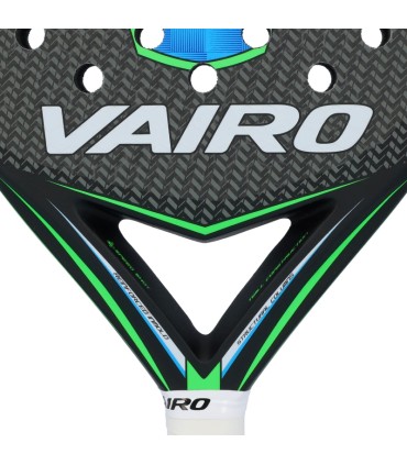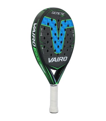 The Vairo Genetic Power Blue is a paddle racket designed for professional players seeking a perfect balance between control and power. Its round shape and wide sweet spot make it the ideal choice for a versatile game that combines precision with strength in every hit. This racket not only stands out for its performance on the court but also for its attractive design in black, blue, and green tones, with modern details that capture attention.