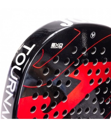 The Joma Tournament Flex 2.0 paddle stands out for its Exo Counter 100% carbon frame, which provides a solid and highly reactive structure, ensuring durability and superior performance. Its oversize shape with centered balance ensures a wide sweet spot and excellent maneuverability, allowing for a balanced game both in attack and defense.