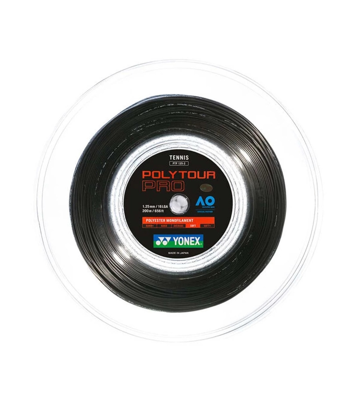 In summary, the Yonex Poly Tour Pro Black 200m Reel is a smart investment for those looking to enhance their game with a string that offers a unique combination of power, control, and comfort. Ideal for players who enjoy a rhythmic game from the baseline, this string emerges as a high-quality option within the competitive world of tennis.