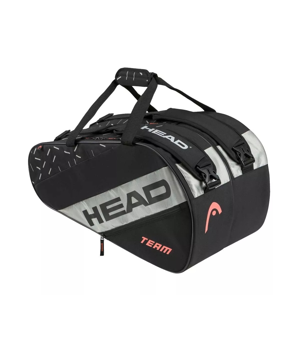 The black Head Team Padel L bag is the perfect accessory for paddle enthusiasts looking to combine style and practicality in one product. Designed by the prestigious brand Head, this bag ensures that you can safely and organizedly transport all your paddle equipment without compromising on style. Its black color design with orange details is not only modern and eye-catching, but also highly functional.
