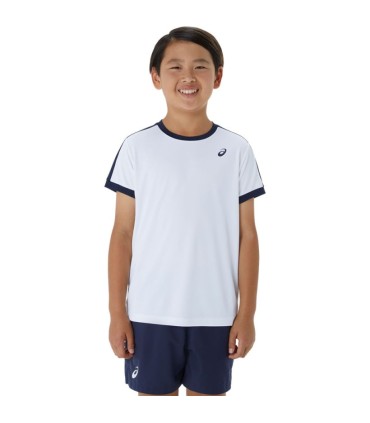 The ASICS T-Shirt White / Navy Blue is ideal for young tennis players looking for comfort and style on the track. With fast drying technology and modern design, this garment ensures that small athletes stay dry and comfortable, allowing them to concentrate on their game without distractions.