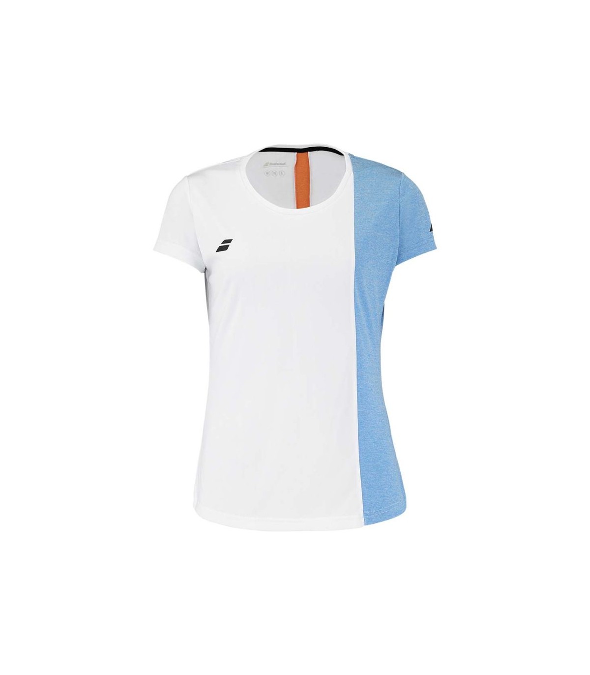 The T-shirt Babolat Play Cap Woman White / Blue It is the perfect choice for tennis players looking for comfort and performance on the track. Designed by the recognized brand BABOLAT, This short-sleeved t-shirt is specially designed to offer you the freedom of movement you need during your most intense parties.