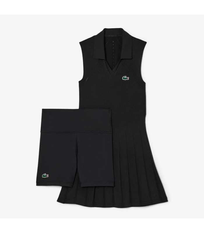 Dress Lacoste Elastic Tennis Black Woman combines elegance and performance for the most demanding tennis players. Made of seamless technical mesh, it offers unrestricted mobility and optimal ventilation. Includes a separate shorty for greater support, and the iconic crocodile of lacoste in silicone adds a touch of distinction. Ideal to highlight on the track.