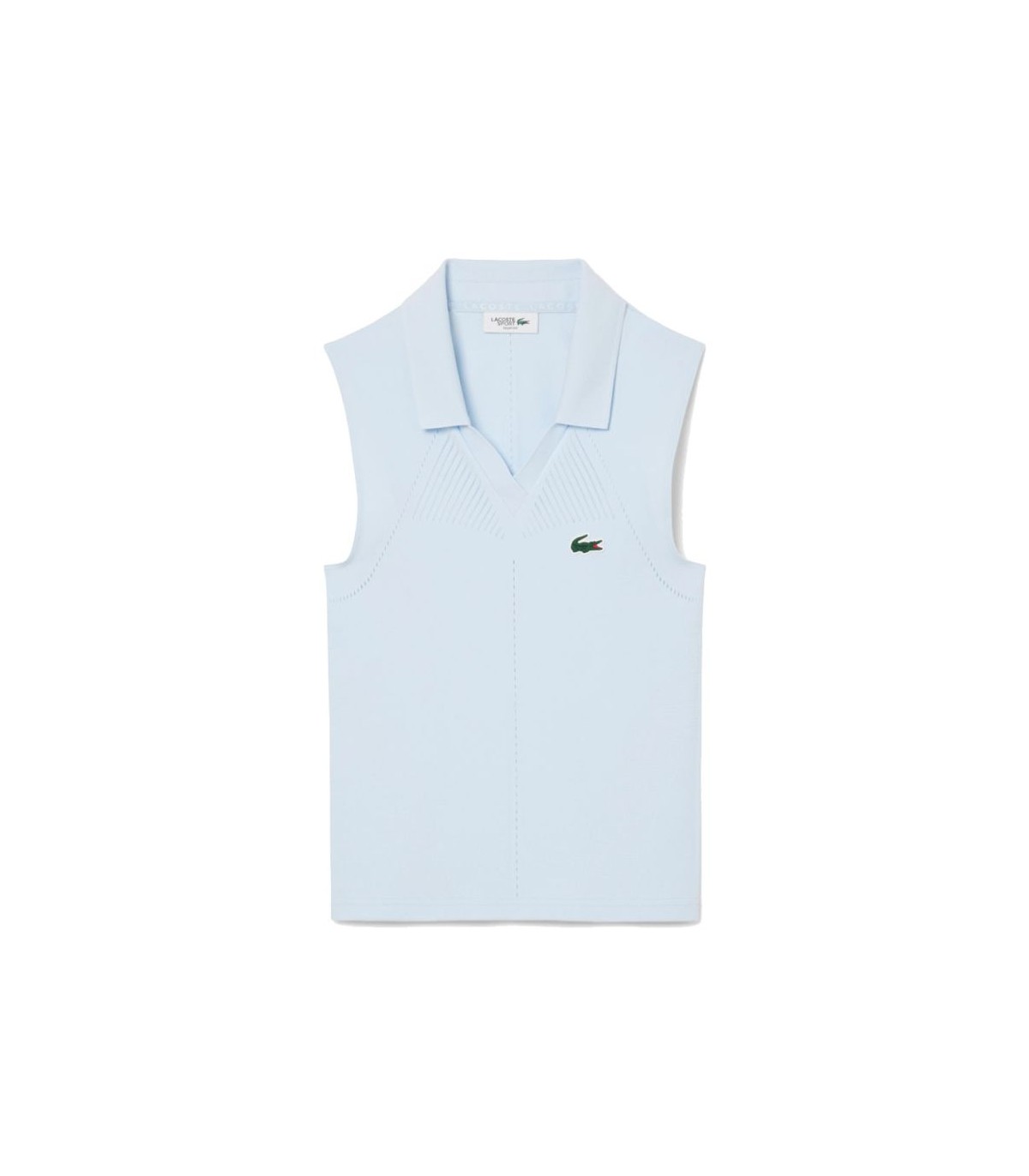 Discover the pole Lacoste Blue sleeveless woman, designed for tennis players looking for style and performance. Made of seamless mesh, it offers breathability and freedom of movement. Its TIGHT FIT adjustment enhances the silhouette, while the mesh inserts guarantee ventilation. Ideal to compete or train with sports elegance.