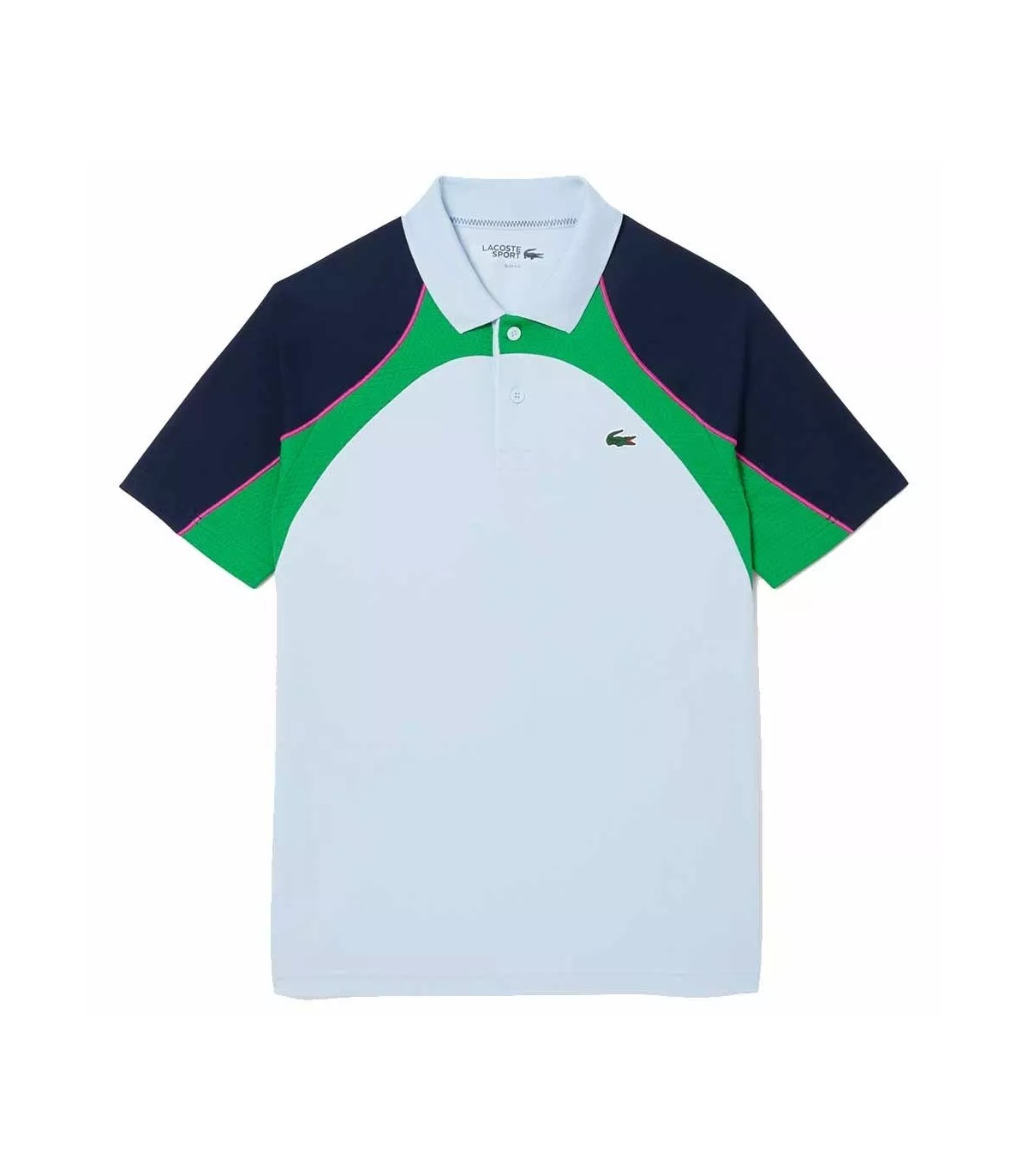 The polo's aesthetic is enhanced by its color block panels, which add a modern and sophisticated touch. The green silicone crocodile on the chest and the brand's logo on the back are a testament to Lacoste's DNA, combining tradition and innovation in every garment.
