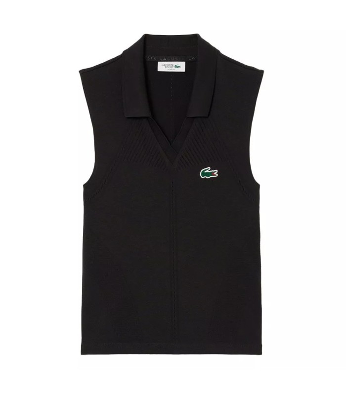 Discover the Polo Lacoste Black sleeveless woman, a garment that combines perfectly elegance and functionality, designed especially for women seeking maximum performance on the tennis court. This pole, with the MPN: PF0614-C31, is the result of the dedication of Lacoste to the development of advanced technology for movement, testing their innovations with professional players.
