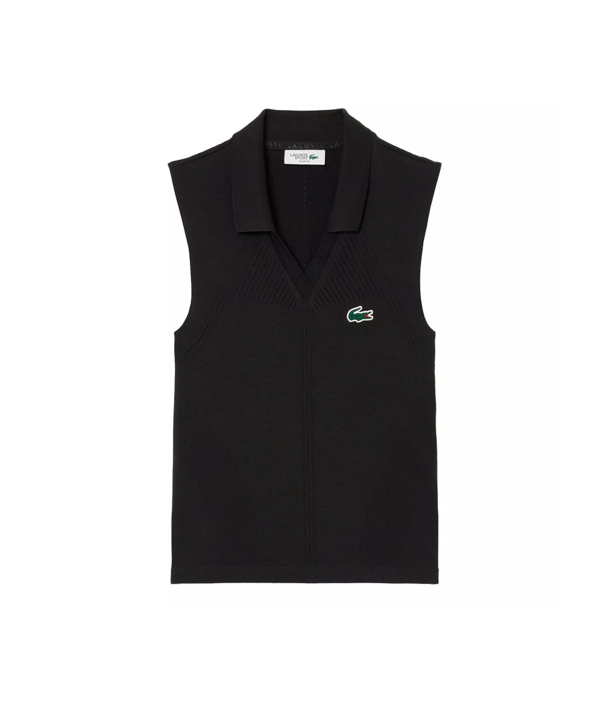The pole Lacoste Black Sleeveless Woman is the perfect choice for tennis players looking for performance and style. With its seamless design and adjusted cut, it offers exceptional comfort and freedom of movement. In addition, its mesh insertions guarantee optimal breathability, keeping fresh in each match.