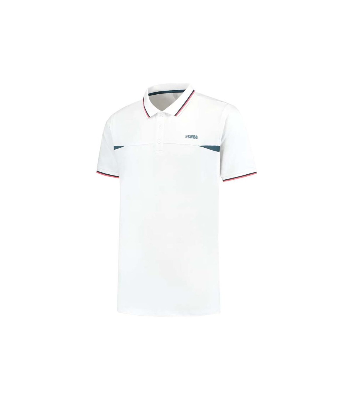 The white K-Swiss Hypercourt polo is ideal for tennis students looking for performance and style. Made of 100% polyester, it offers freedom of movement and efficient humidity management. Its elegant design with details in pink and blue, together with the iconic K-Swiss logo, make it an essential on the track.