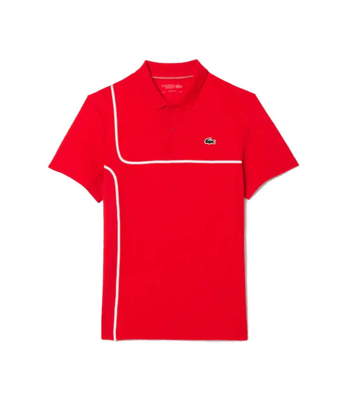 The pole Lacoste Red tennis combines style and functionality for tennis lovers. Made with recycled polyester and Ultra-Dry technology, it offers a comfortable fit and moisture absorption. Its Chic sports design with classic colole and the iconic crocodile in silicone add elegance and distinction on the track.