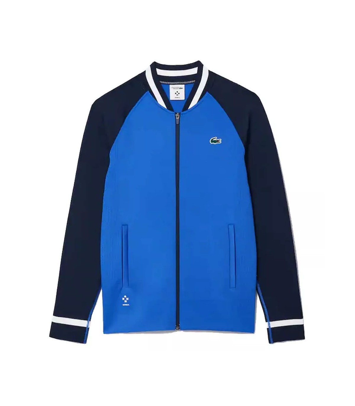 Made with recycled polyester from manufacturing scraps, this jacket is a sustainable choice for environmentally conscious players. It features a zip closure and practical side pockets for added functionality. The iconic silicone crocodile of Lacoste adorns the chest, reaffirming the quality and sophistication that characterize the brand.