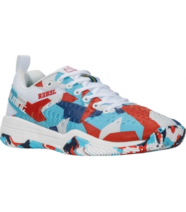 The Salming Rebel Camo shoes are designed for paddle players looking for a perfect balance between style and functionality. They are ideal for those who demand the best in each game and want to highlight on the track with a unique design.