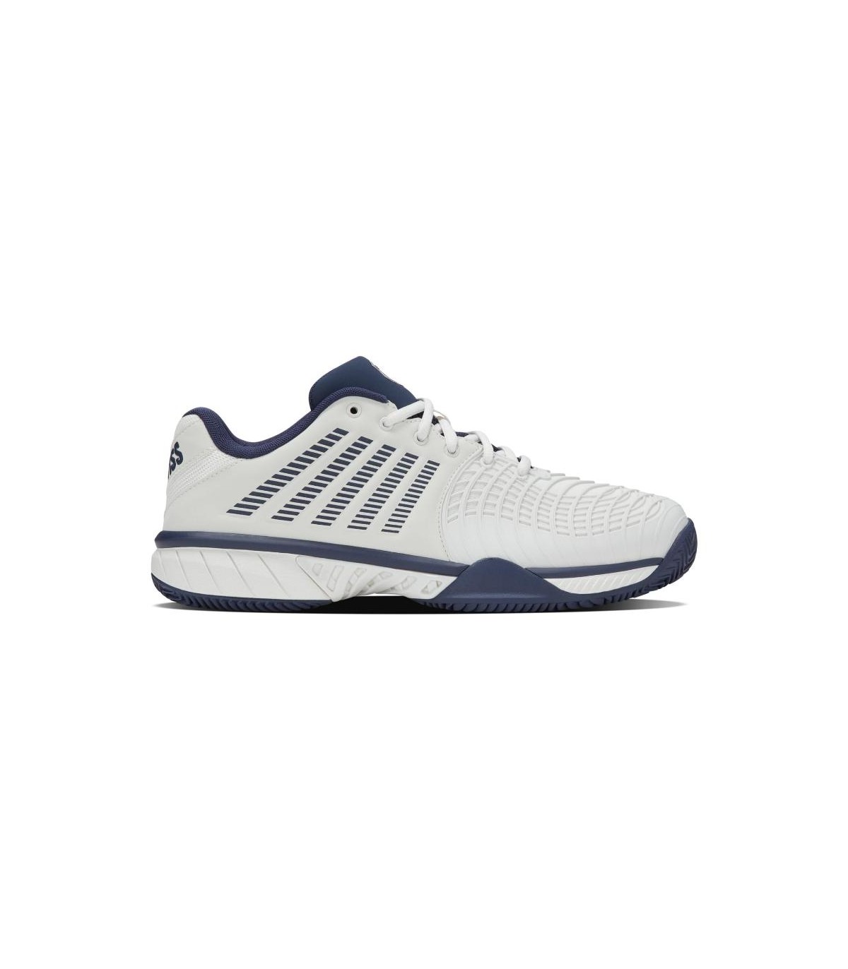 Discover the Sneakers K-Swiss Express Light 3 HB Clay, an exceptionally designed product for tennis players that value the lightness, the support and the traction In whipped land tracks. These slippers, in elegant combination of White and dark blue, They are the perfect choice for those who seek to raise their game to the next level.