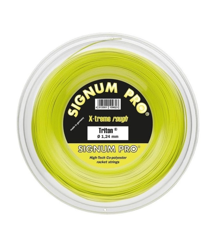 Disponible en un color amarillo vibrante, la bobina de 200 metros es ideal para jugadores que buscan un equilibrio en su juego, con una cuerda que les permita mantener el control sin sacrificar potencia y efectos. La Signum Pro Triton es la elección perfecta para quienes desean dominar cada aspecto de su juego con precisión y confianza.