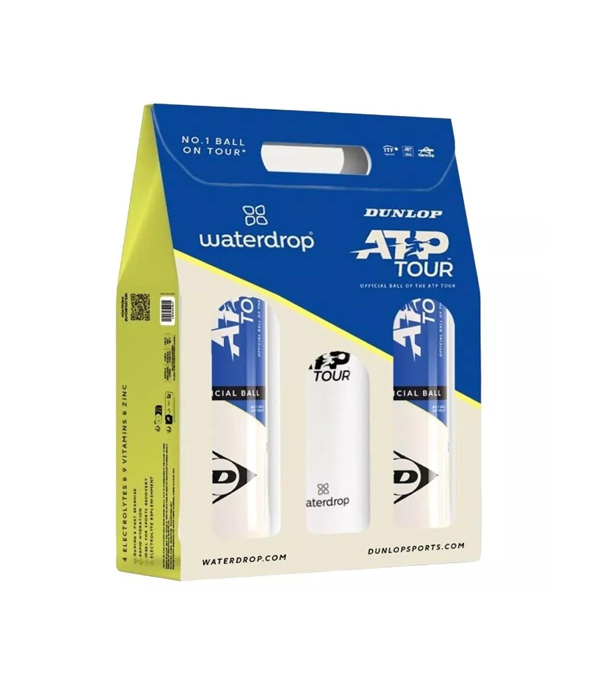 Este completo set incluye una botella Waterdrop ATP de 600 ml, dos tubos de 4 pelotas Dunlop ATP Tour y tres cubos Microlyte, elementos cuidadosamente seleccionados para proporcionarte la máxima eficacia y comodidad durante tus entrenamientos o competiciones.