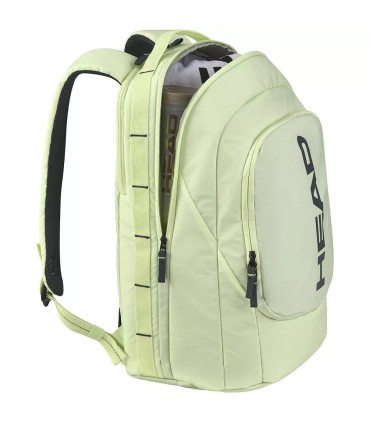 El color verde vibrante de la mochila no solo refleja un diseño moderno y atractivo, sino que también resalta en las pistas de tenis, subrayando la personalidad y el estilo del jugador. Esta elección cromática está alineada con las tendencias actuales del deporte, haciendo de la mochila un accesorio tanto funcional como estéticamente agradable.