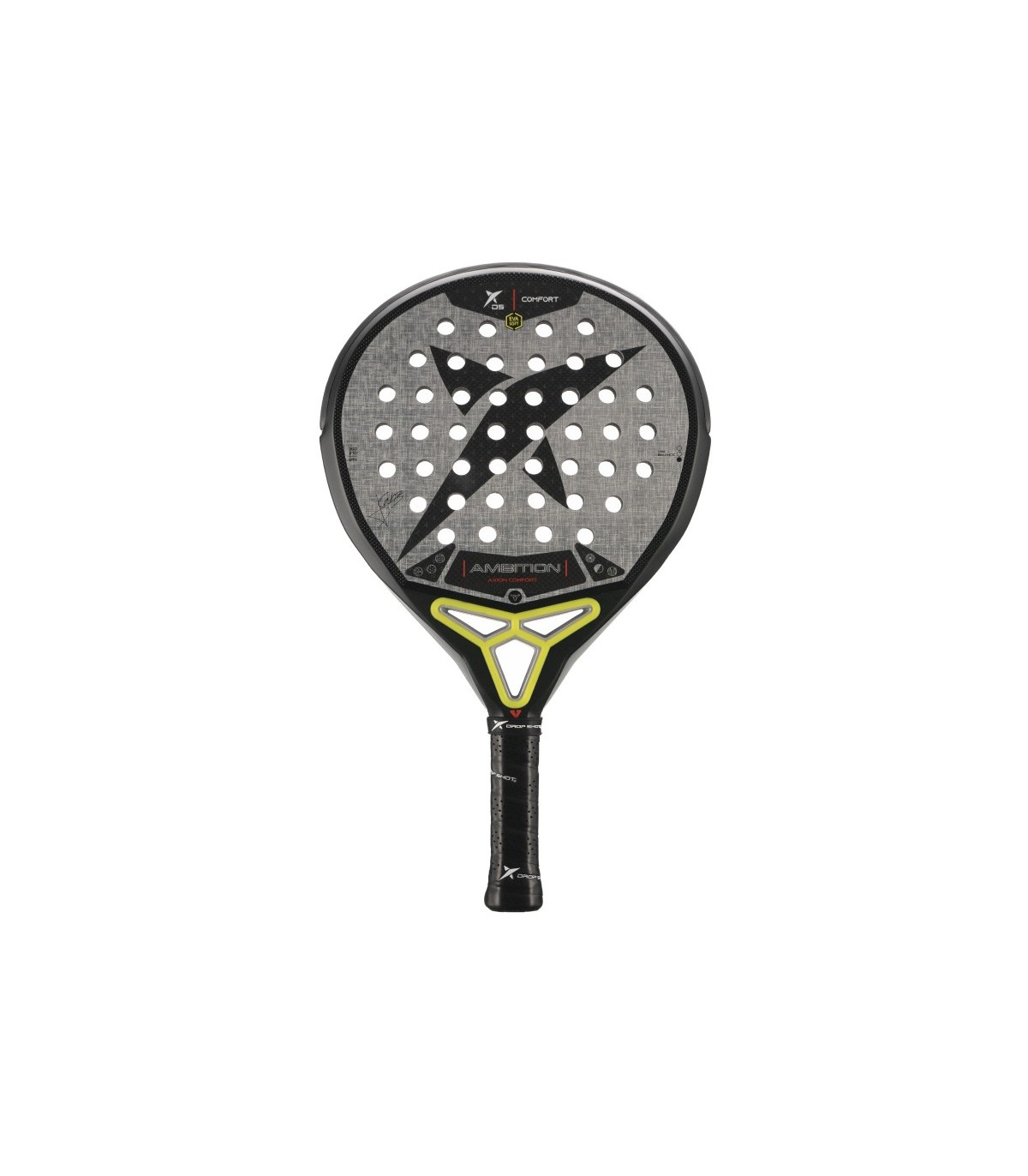 Con un diseño elegante y moderno, la Drop Shot Jon Sanz Axion Comfort 2025 combina tonos grises con detalles amarillos vibrantes, asegurando que cada jugador luzca un estilo atractivo en la pista. La firma del jugador Jon Sanz en la pala le confiere un sello de autenticidad y calidad profesional, haciéndola no solo un instrumento de juego, sino un referente de excelencia en el mundo del pádel.