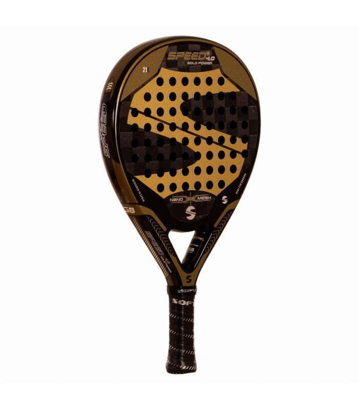 La Pala Softee Speed Gold Power 4.0 Nano Mesh es la elección perfecta para los apasionados del pádel que buscan destacar tanto en estilo como en rendimiento. Esta pala no solo es un espectáculo visual con su elegante diseño en tonos dorados, sino que también ofrece una experiencia de juego inigualable gracias a su avanzada tecnología y componentes de alta calidad.