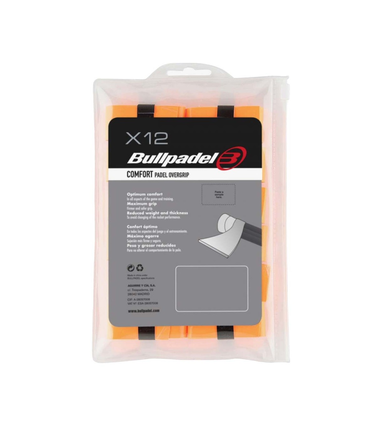No esperes más y equipa tu pala con los soberbios overgrips Bullpadel Comfort, disponibles en un vibrante color naranja que no solo destacará en la pista, sino que también mejorará tu juego de manera notable.