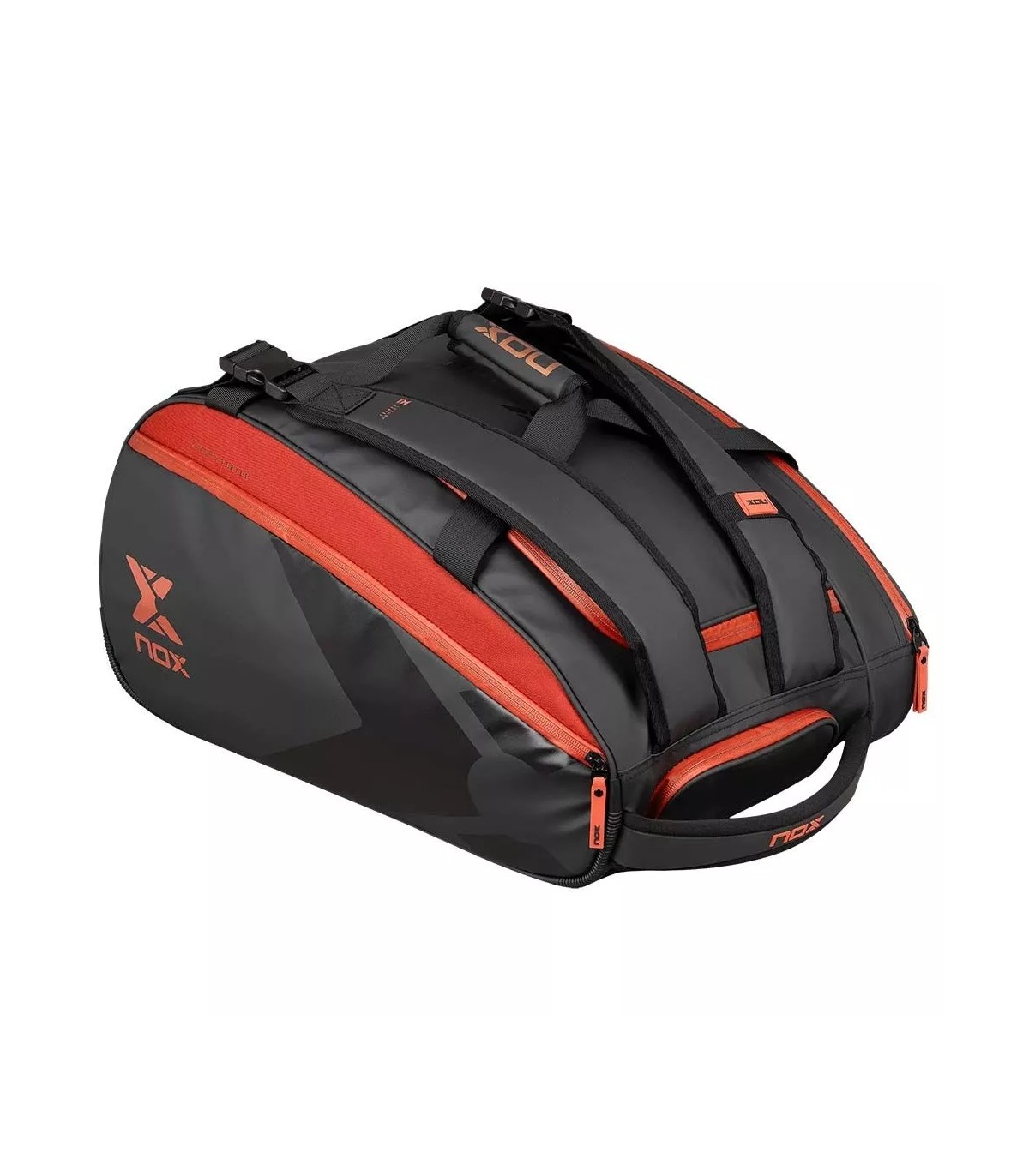 La Termobolsa Nox Luxury Open Series Negra/Roja es el complemento perfecto para los apasionados del pádel que buscan un producto de máxima calidad y diseño exclusivo. Esta termobolsa está diseñada para ofrecer una combinación ideal de funcionalidad y estética, permitiendo a los jugadores llevar todo lo necesario para sus entrenamientos y competiciones con total comodidad.