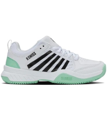Explora la cancha con confianza y estilo con las zapatillas Kswiss Court Express 2 Clay en colores blanco, menta y negro. Diseñadas específicamente para jugadoras de pádel, estas zapatillas ofrecen una combinación perfecta de comodidad y rendimiento.