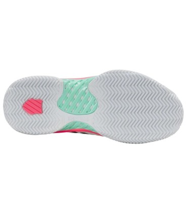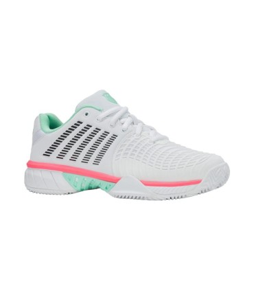 Descubre las Zapatillas Kswiss Express Light 3 HB Clay en una elegante combinación de blanco, menta y rosa, diseñadas especialmente para ofrecerte un rendimiento óptimo en la pista de pádel. Estas zapatillas para mujer combinan estilo y funcionalidad, asegurando que cada paso sea firme y cómodo.