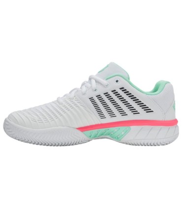Las Zapatillas Kswiss Express Light 3 HB Clay Blanco Menta Rosa para mujer ofrecen una comodidad excepcional y una estabilidad superior en la pista de pádel. Diseñadas con una suela de espiga, garantizan un agarre perfecto en superficies de tierra batida. Su ajuste preciso proporciona una sujeción óptima para que te concentres en cada jugada con confianza y seguridad.