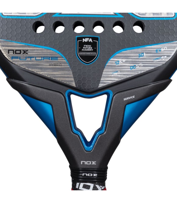 Utilizada por talentos emergentes de la Nox Future Academy, la Nox Future Hybrid 12K Alum 2025 se destaca por su forma de lágrima, que facilita las transiciones suaves entre el juego defensivo y ofensivo. Este diseño único permite a los jugadores adaptarse rápidamente a las situaciones del juego, asegurando un rendimiento óptimo en cada golpe.