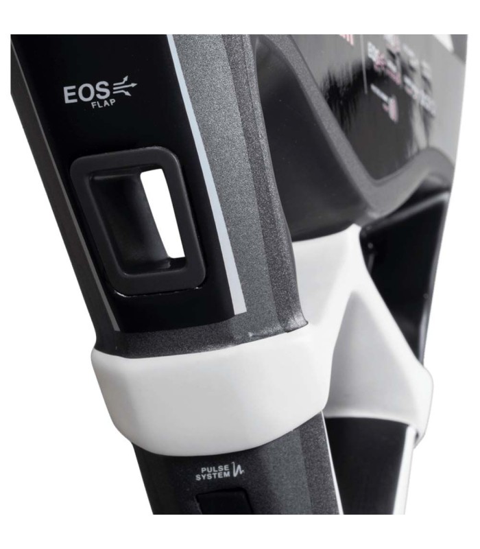 El marco perfilado de la raqueta mejora la aerodinámica, mientras que el mango extendido facilita el agarre, siendo ideal para jugadores ofensivos que buscan dominar el arte del smash y la salida de bola. La integración de la tecnología EOS Flap, con perforaciones laterales, optimiza la maniobrabilidad y redistribuye el peso, lo que hace que esta raqueta sea rápida y formidable en la cancha.