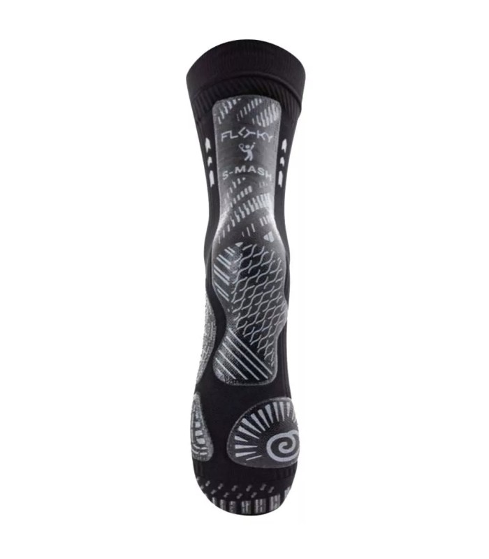 El diseño técnico del Floky S-MASH 3D actúa como un soporte activo para el pie, gracias a su compresión localizada y su tejido estructurado, que estabiliza los apoyos y limita los microtraumas durante la actividad física. Este calcetín de compresión contribuye a absorber los impactos derivados de los cambios de dirección y favorece una mejor recuperación muscular tras el esfuerzo.